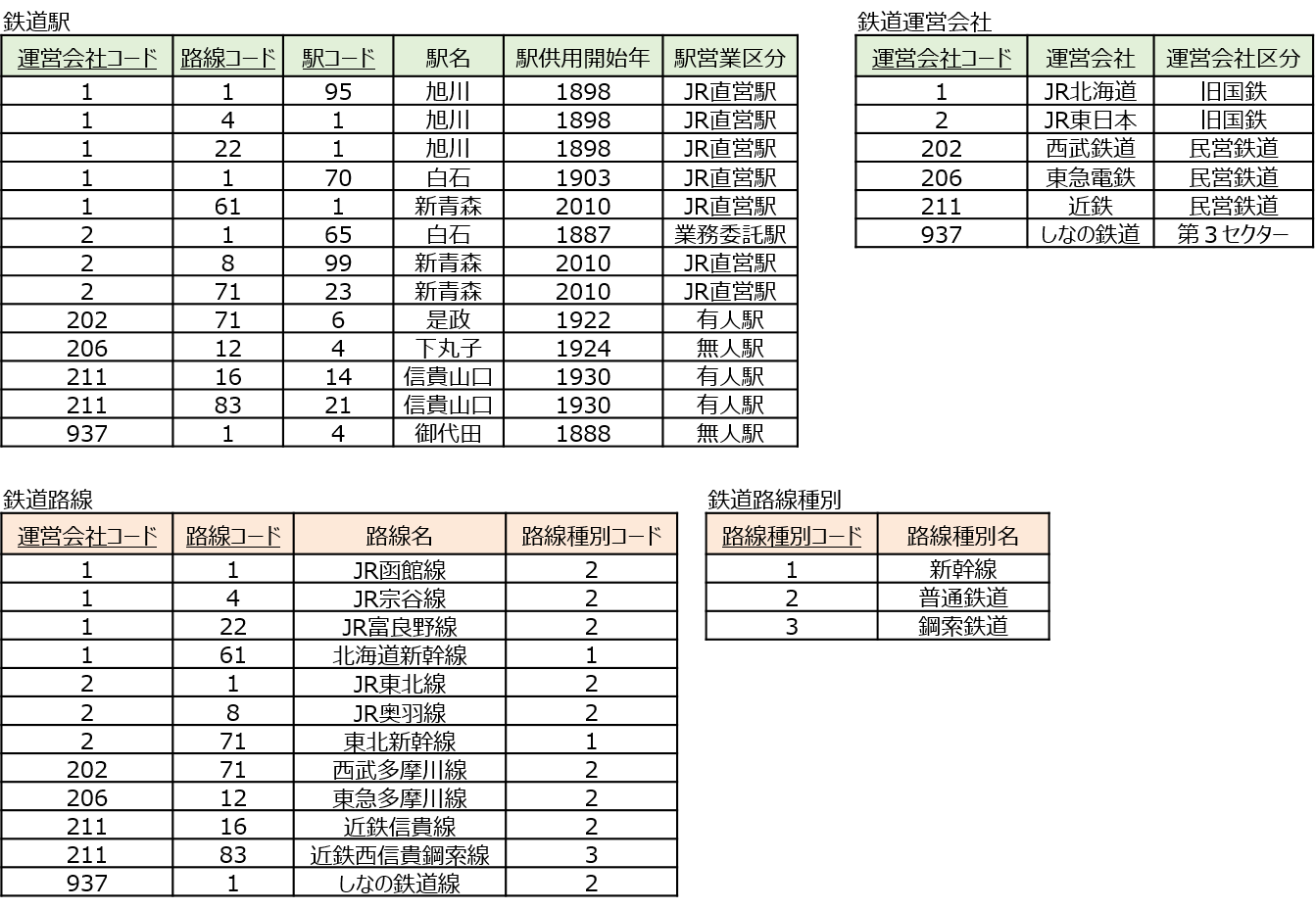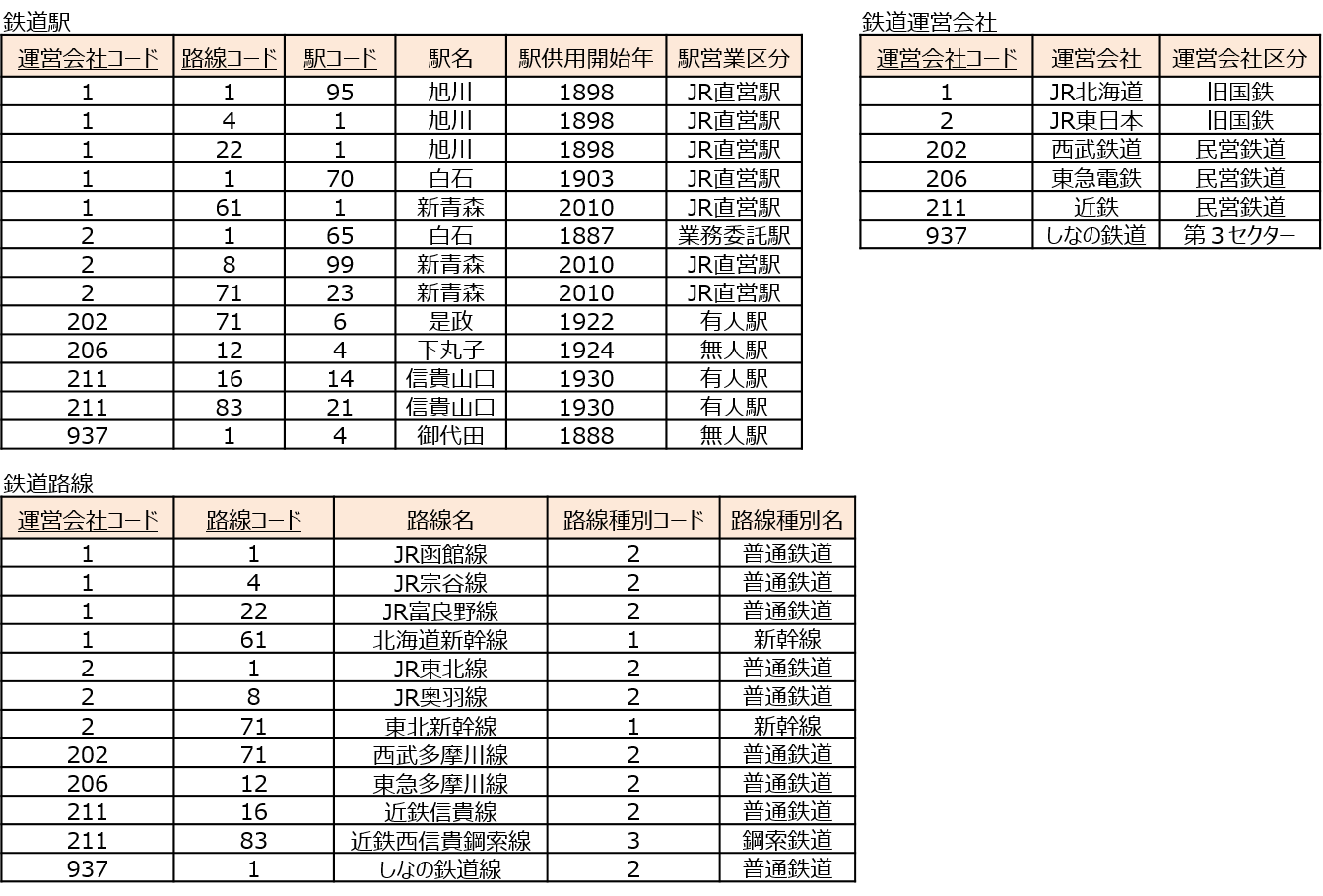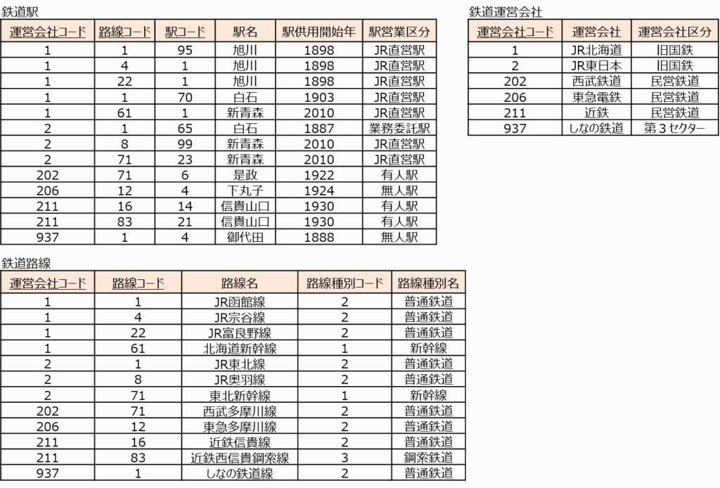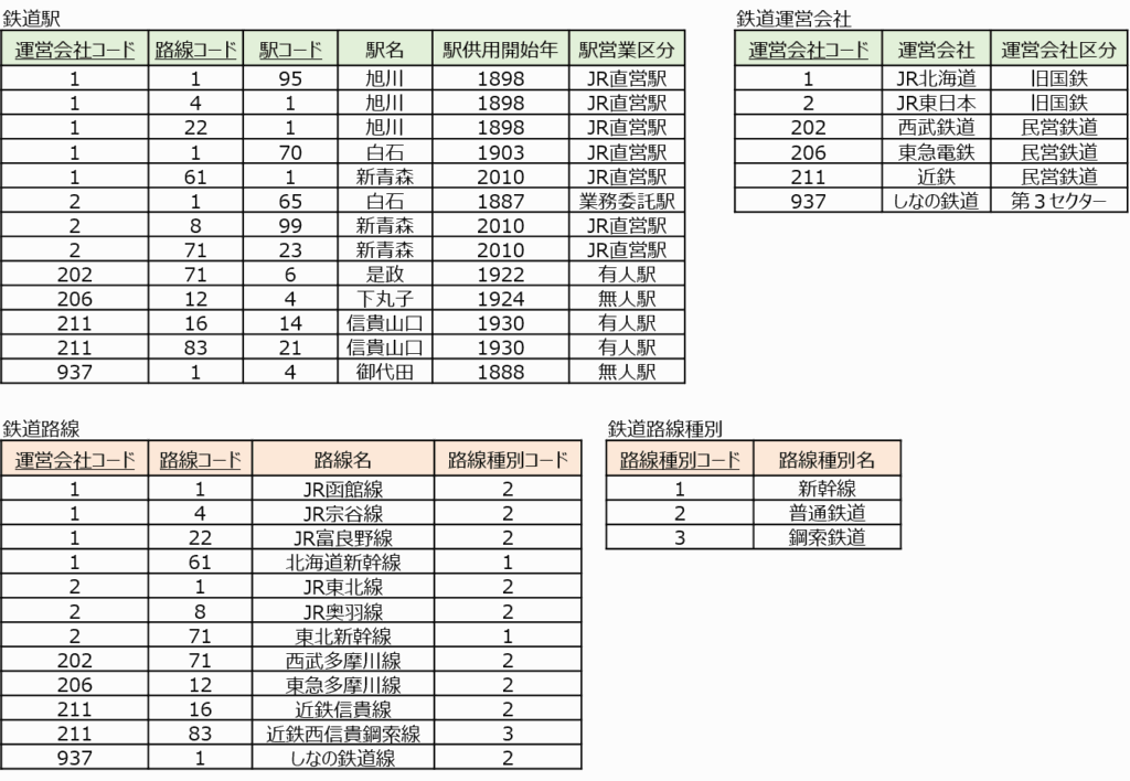 非正規形のデータは繰り返し項目(=単一ではない属性)が見られます。