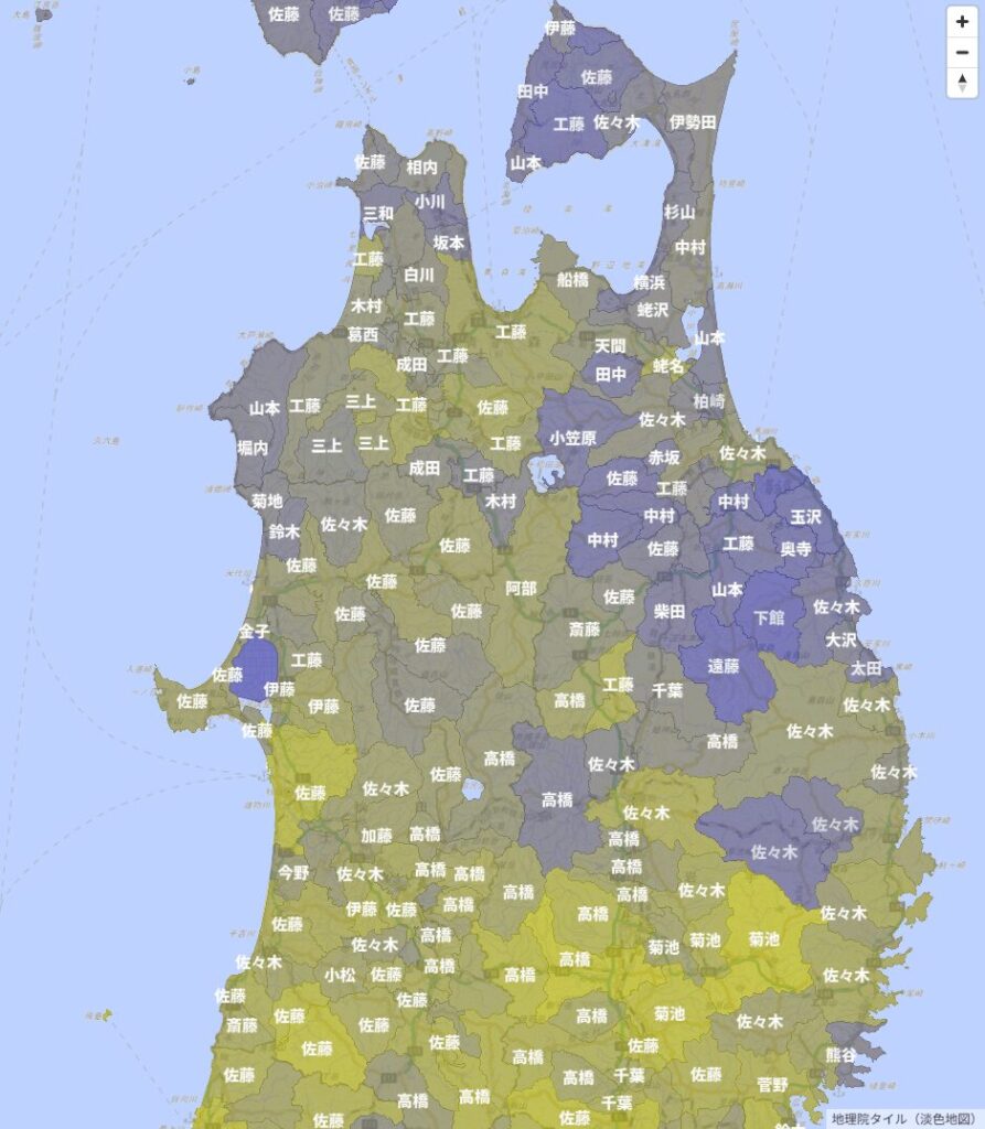 南東北では市町村単位でも佐藤姓が多いですが、北東北では違います。